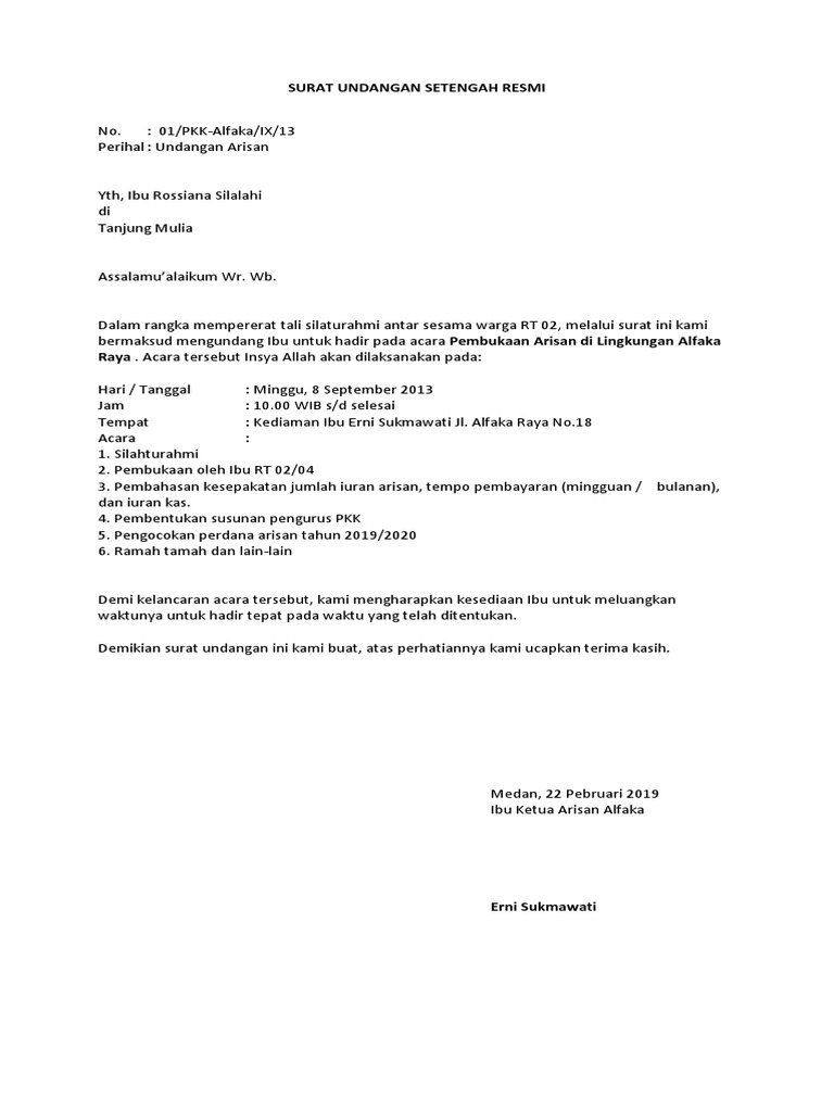 Download Surat Undangan Setengah Resmi Doc Contoh Ilb from contohsuratlengkap.org Untuk mendapatkan file contoh surat undangan rapat yang tidak diproteksi dan bebas untuk diedit, silahkan anda kunjungi situs kami. Contoh desain surat undangan halal bihalal lewat whatsapp pdf. Contoh surat undangan resmi sangat banyak, namun pada umumnya memiliki tujuan yang sama, yakni mengundang pihak lain untuk menghadiri sebuah kegiatan. Apabila sudah ada, akan kami update. Untuk membantu anda dalam hal ini, kami telah menyiapkan contoh surat undangan setengah resmi untuk anda. Untuk mendapatkan file contoh surat undangan rapat yang tidak diproteksi dan bebas untuk diedit, silahkan anda kunjungi situs kami. Karmin contoh undangan tidak resmi surat undangan karang taruna. Pembuatan surat undangan sangatlah diperlukan apabila sebuah lembaga maupun organisasi ingin mengundang beberapa orang penting untuk bisa.