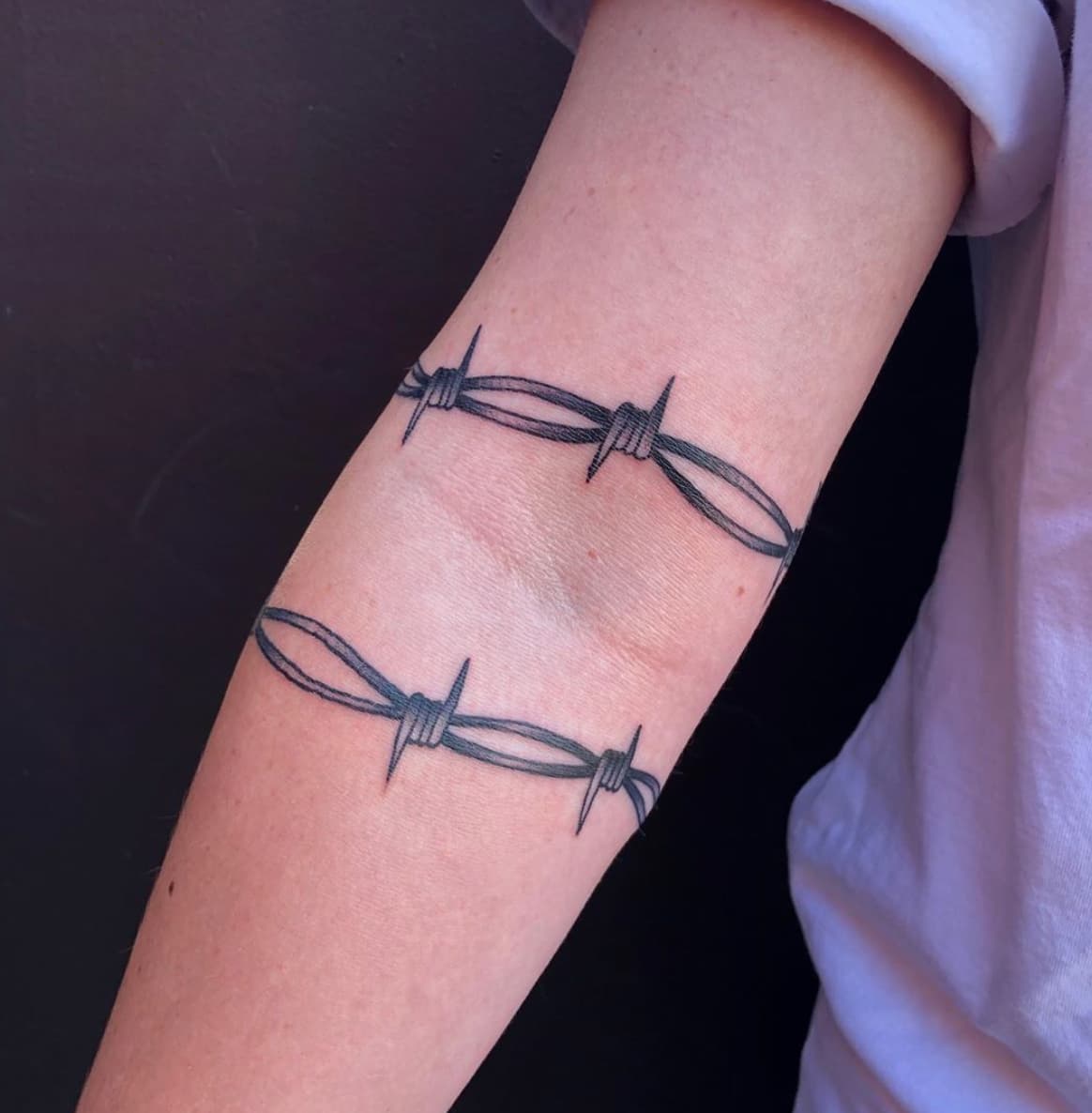 Barbed wire tattoos that are standalone can be a single segment or a band that wraps all the way around an arm or ankle.